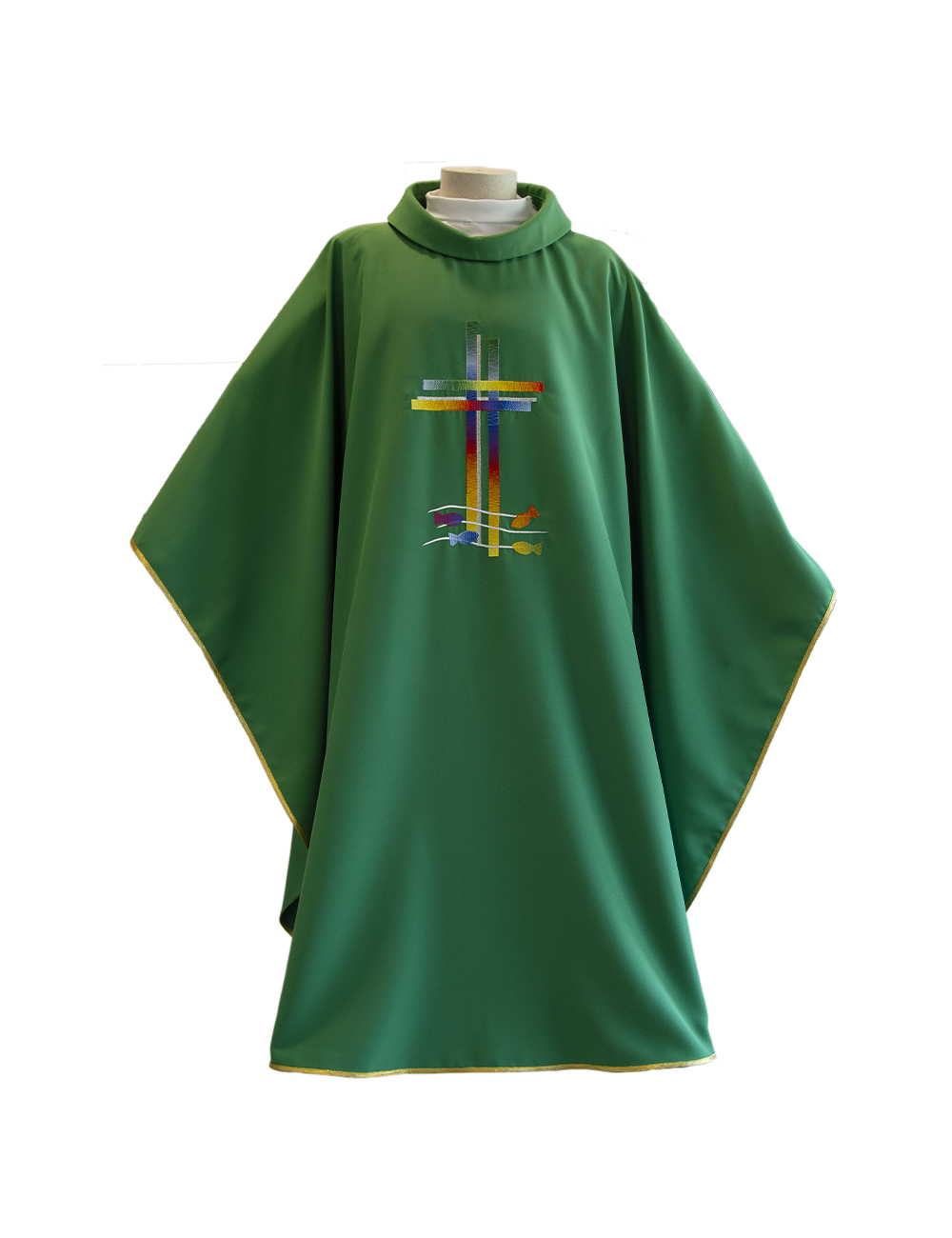 Green Chasuble with colored gradient cross and fish