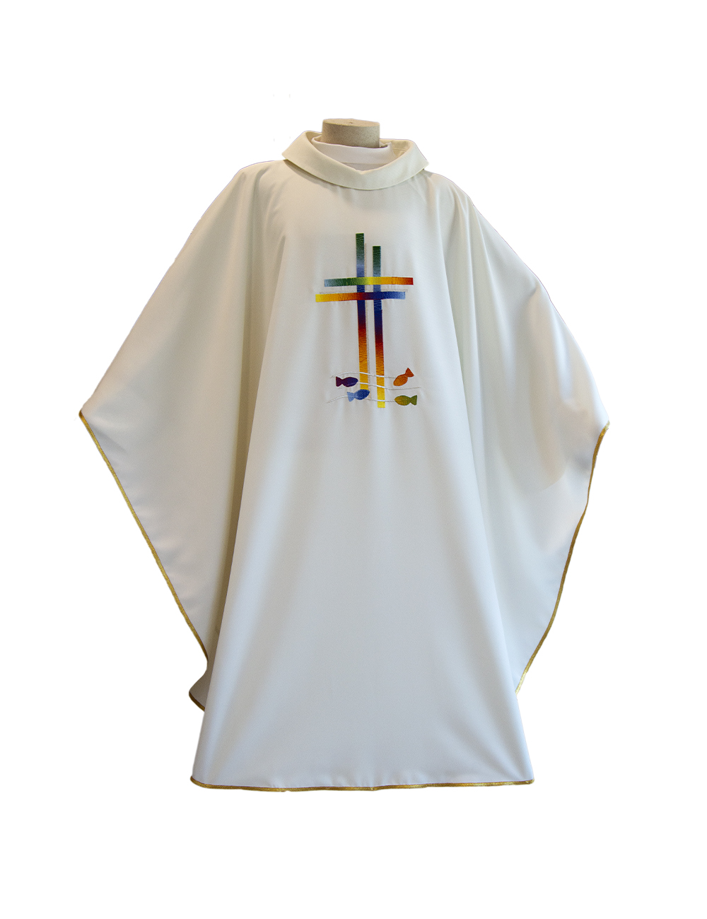 Pearl Chasuble with colored gradient cross and fish