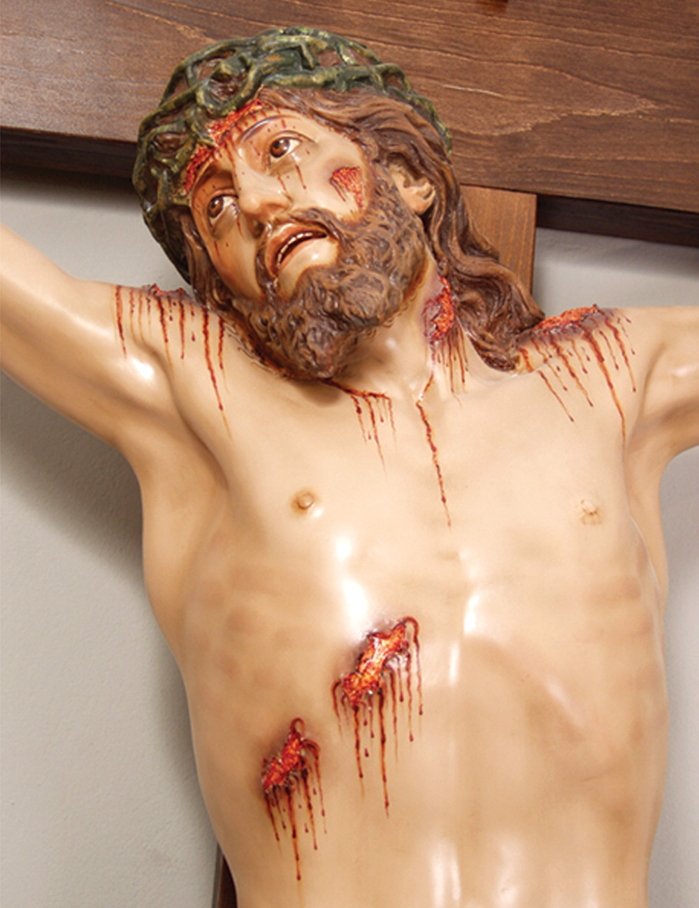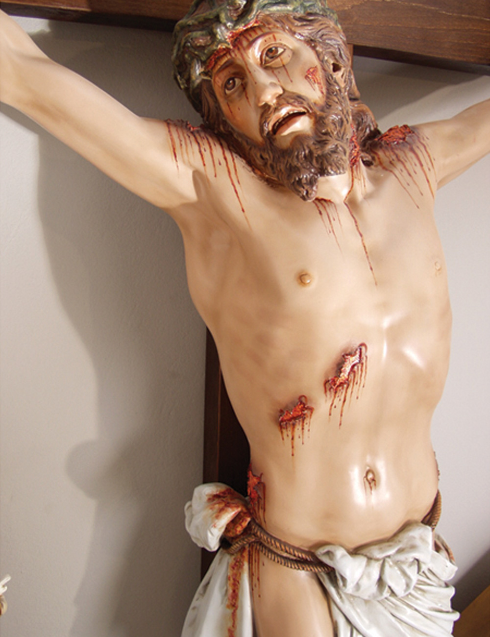 Cristo na cruz tamanho real de parede. Cruz de madeira.