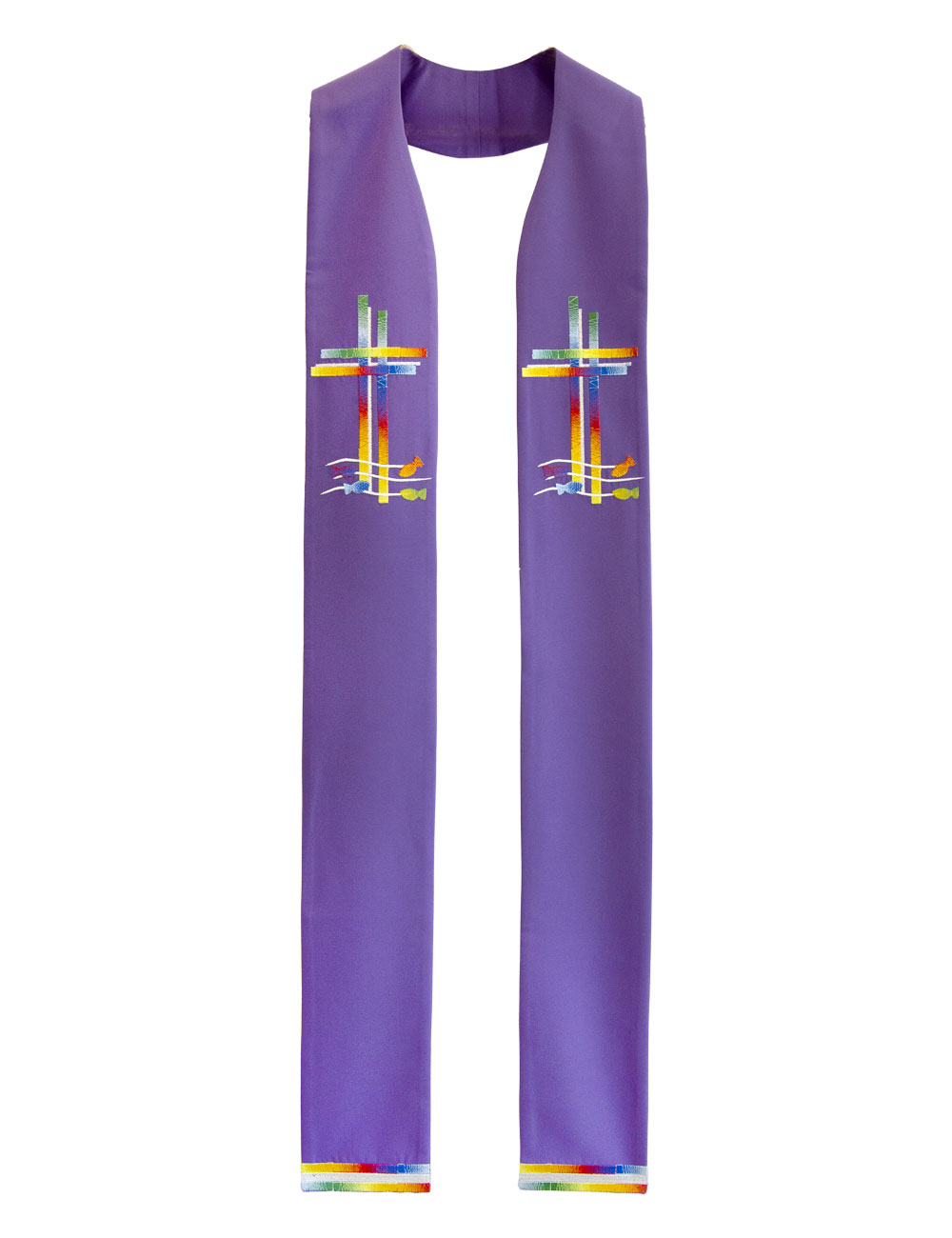 Estola Roxa com Cruz degradé colorida e peixes
